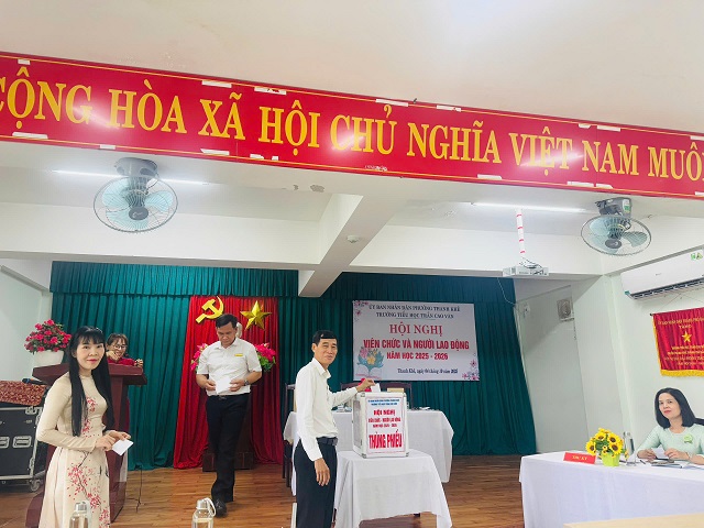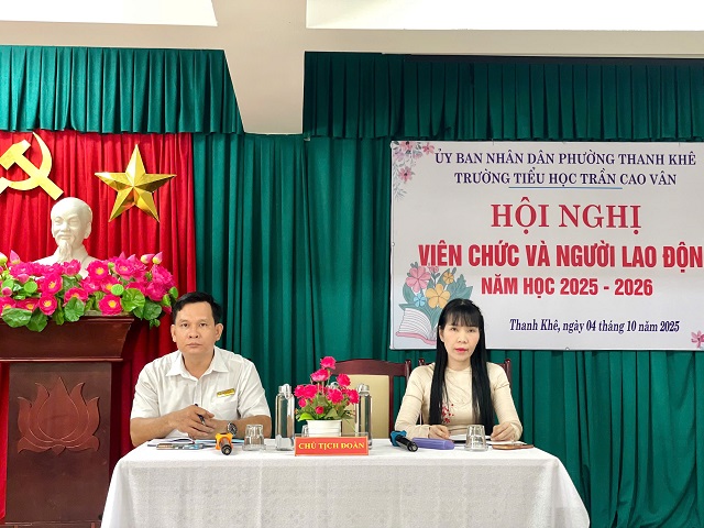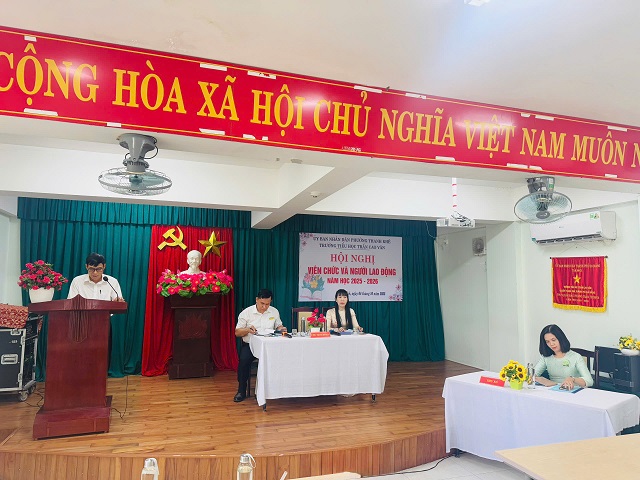 Thực hiện Hướng dẫn số 03/HD-UBND ngày 06/9/2025 của Ủy ban nhân dân phường Thanh Khê về việc tổ chức Hội nghị viên chức, người lao động năm học 2025 – 2026, sáng ngày 04/10/2025, Trường Tiểu học Trần Cao Vân đã long trọng tổ chức Hội nghị viên chức – người lao động năm học 2025 – 2026.