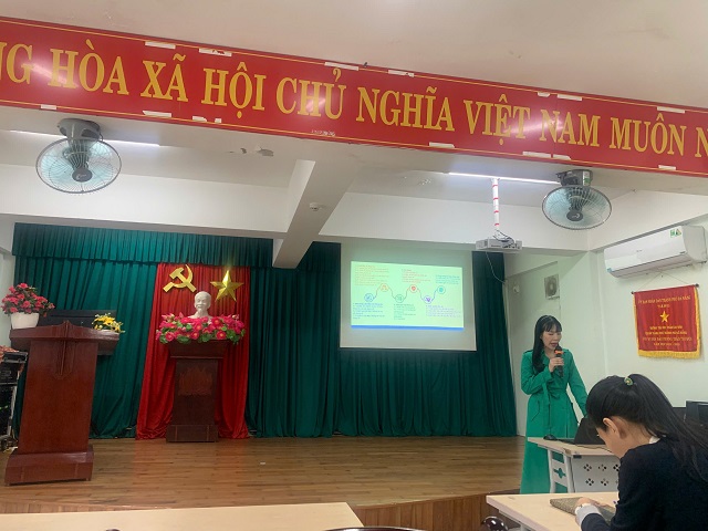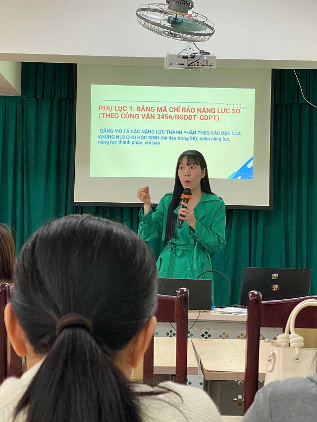Tại buổi tập huấn, cô Nguyễn Thị Minh Tâm- Phó hiệu trưởng nhà trường đã báo cáo tổng quan về năng lực số, giới thiệu khung năng lực số gồm 6 miền năng lực, 24 năng lực thành phần và bảng mã chỉ báo năng lực số theo quy định. Nội dung tập huấn tập trung vào các hình thức triển khai năng lực số trong nhà trường như dạy học môn Tin học theo Chương trình GDPT 2018 và tích hợp năng lực số vào các môn học: Đạo đức, Công nghệ, Khoa học, Tiếng Việt… thông qua kế hoạch giáo dục môn học và kế hoạch bài dạy.