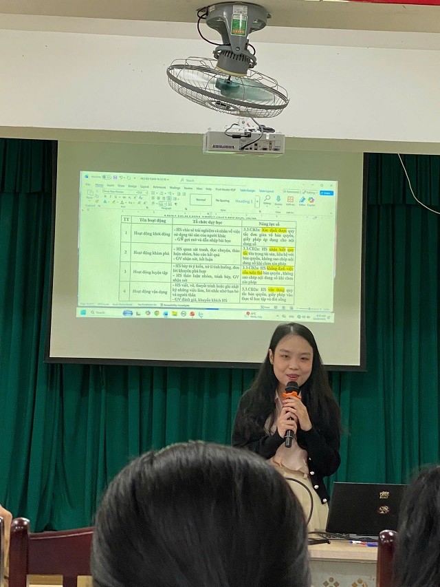 Bên cạnh đó, giáo viên được xem các minh họa cụ thể về tích hợp năng lực số trong kế hoạch giáo dục môn học và kế hoạch bài dạy minh họa môn Đạo đức. Kết thúc buổi tập huấn, Cô Minh Tâm đã chỉ đạo các tổ chuyên môn tiếp tục rà soát nội dung tích hợp, nghiên cứu tài liệu và nghiêm túc triển khai dạy học lồng ghép năng lực số, góp phần nâng cao chất lượng giáo dục toàn diện cho học sinh.